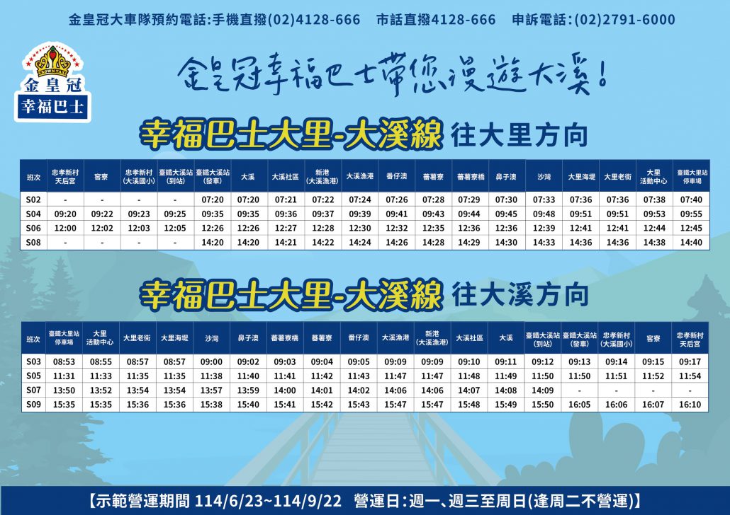 (一)時間:自114年6月23日起至9月22日止 (逢週二停駛)。