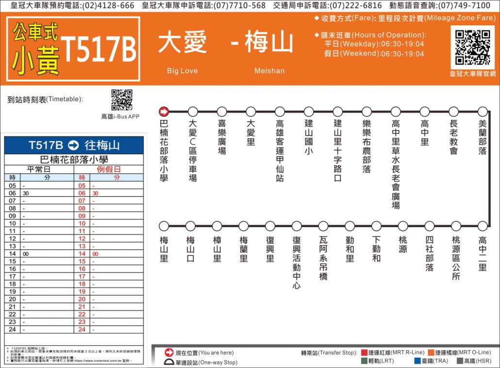 高雄DRTS-橘22線路線時刻表🚖