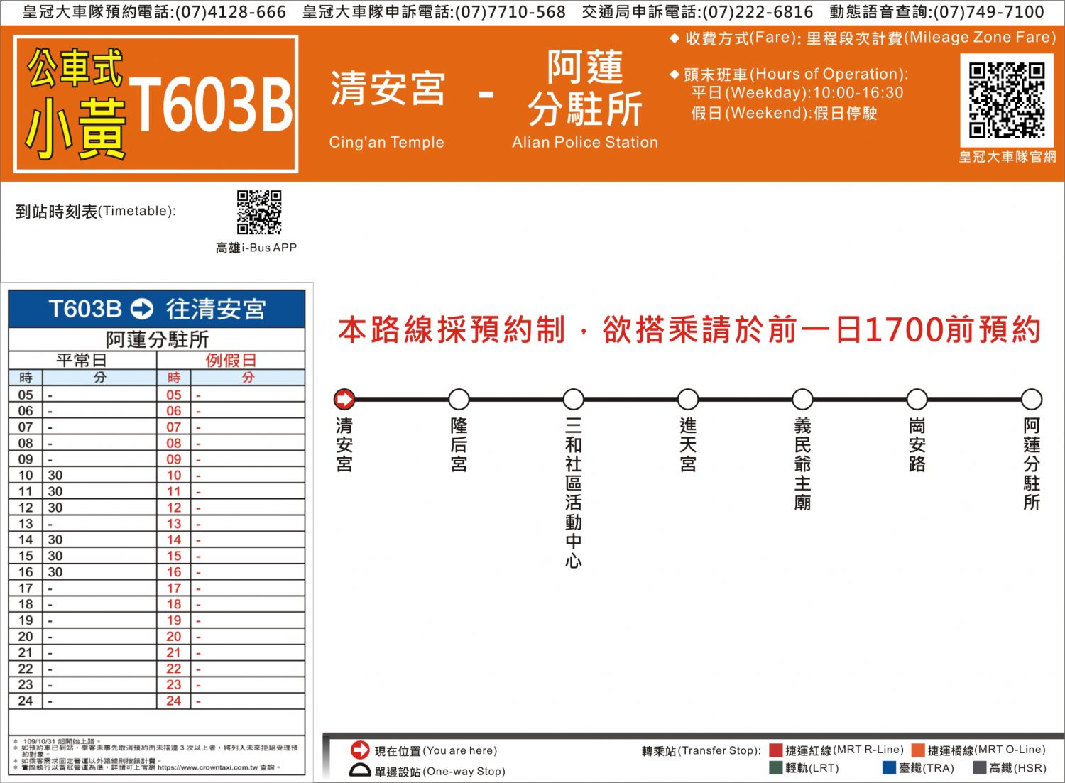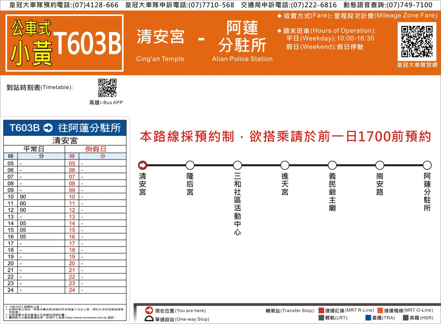 高雄DRTS-T603B線路線時刻表&票價🚖