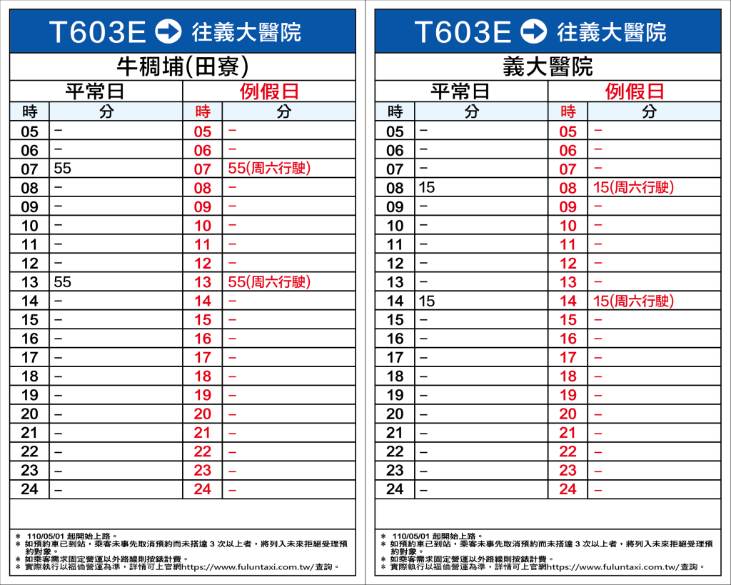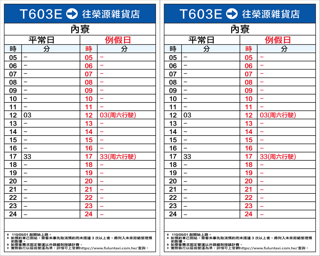 高雄DRTS-T603E線路線時刻表🚖